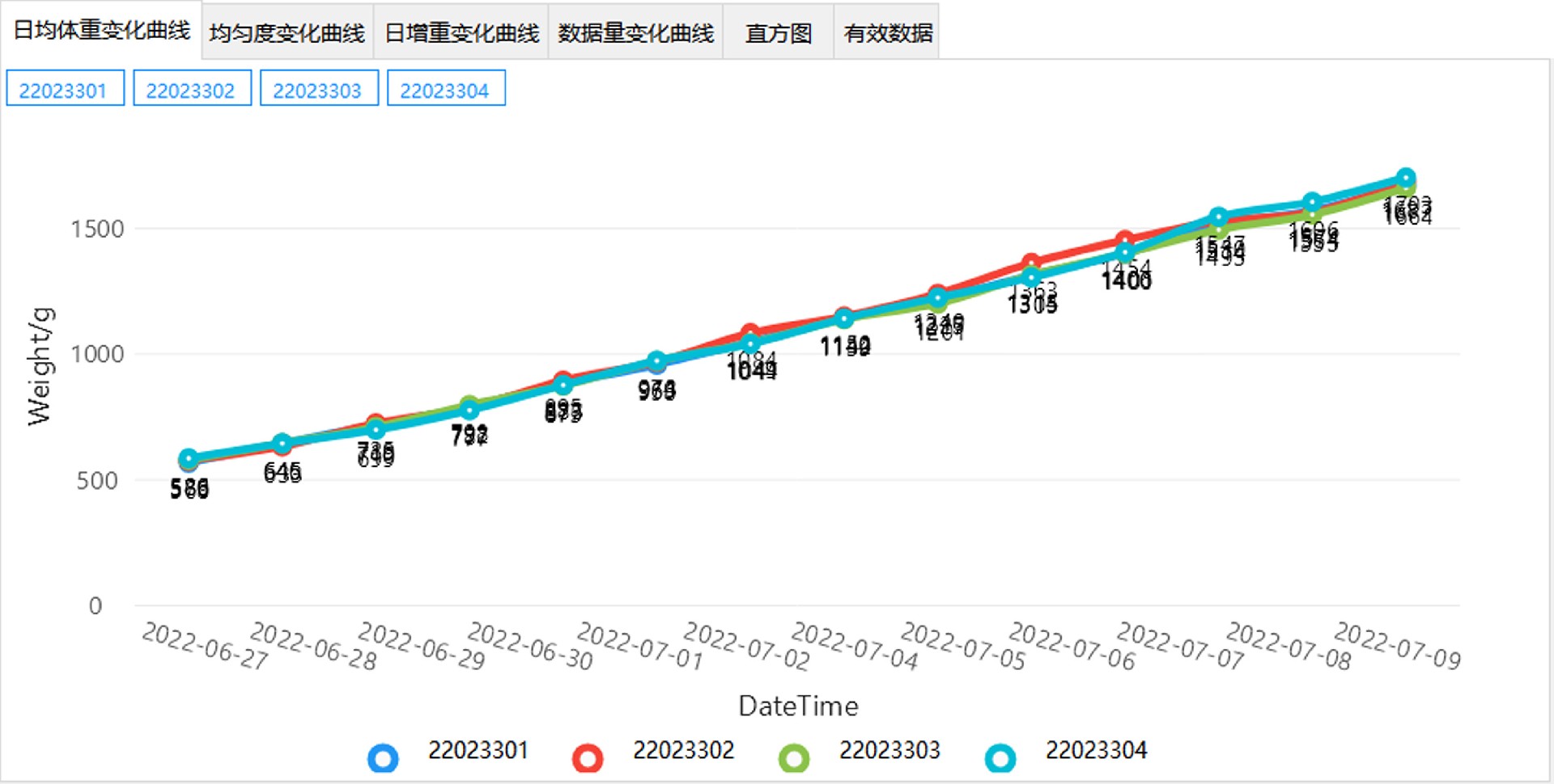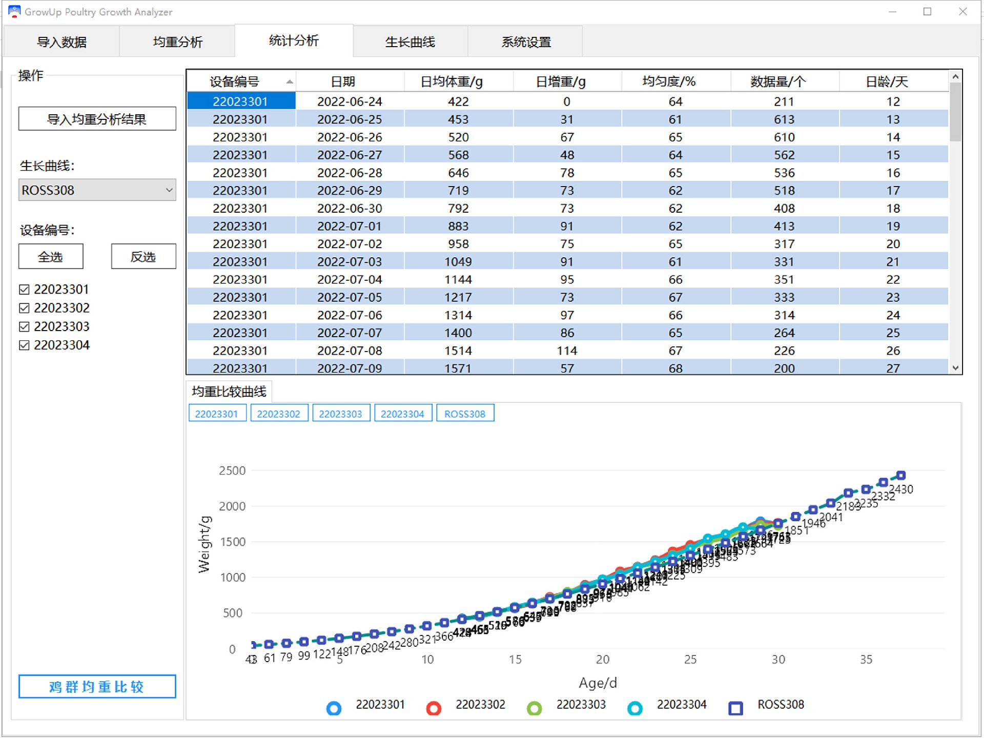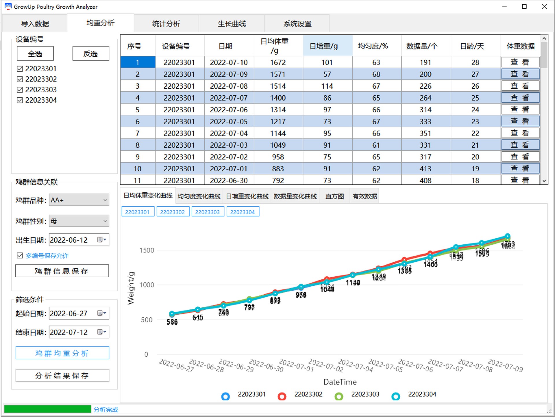 ☑ 智能体重分析算法,不依赖于生长曲线