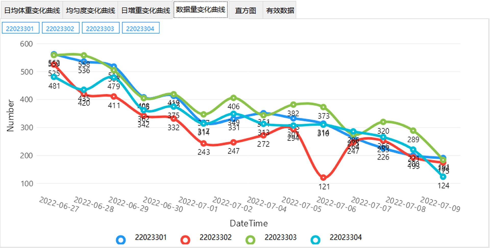 ☑ 数据查看方式:通过显示终端查看每日均重结果或者通过上位机软件分析得到每日均重结果