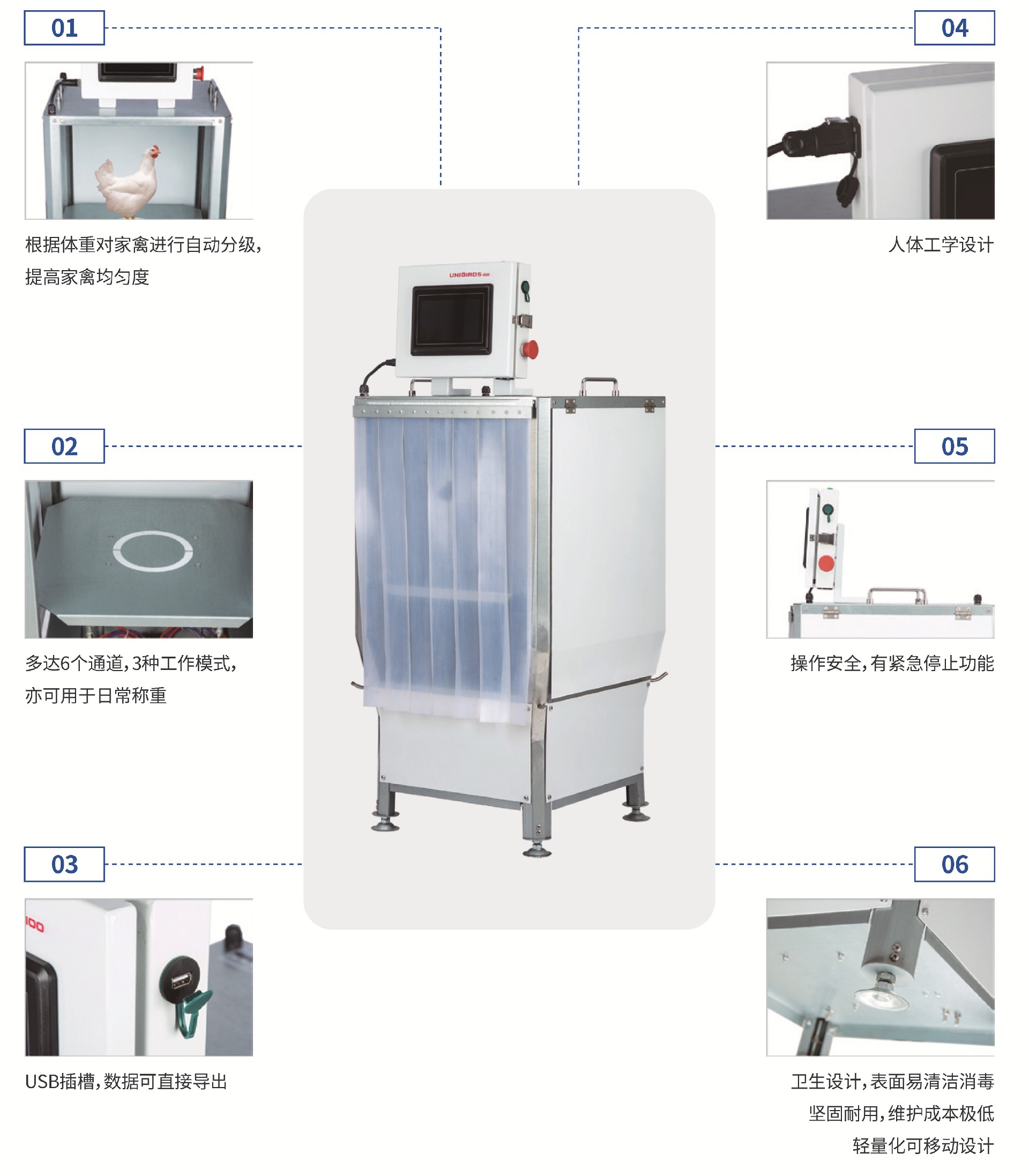 均佳100-家禽智能体重分级机是一种为家禽自动化分级而开发的电气动设备。
